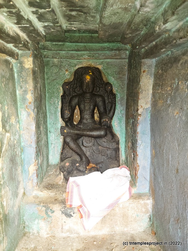In the southwest is the shrine for Vinayakar, Murugan with his consorts Valli and Deivanai are in a shrine on the west, and Mahalakshmi has a separate shrine in the northwest part of the temple. In the koshtams there are only Durga (facing north) and a stunning bas relief of Dakshinamurti facing south. There are separate shrines for Chandikeswarar, navagraham, Bhairavar, Suryan and Chandran.
