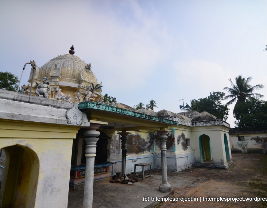 This nondescript temple in a small village of Mappadugai / Pandaravadai is said to be quite old, given that it is constructed entirely of bricks. The temple is noted in the region for its unique Navagraham arrangement, causing it to be a preferred place of worship during eclipse times, and also to ward of Chandra dosham. However, what is the interesting Ramayanam story that may have given this village its name? Continue reading Tirumeniazhagar, Mappadugai, Nagapattinam